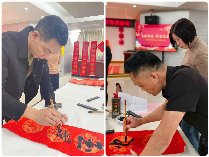 集團領(lǐng)導(dǎo)班子與職工們積極參與,有的駐足欣賞書法創(chuàng)作,有的認真挑選春聯(lián)內(nèi)容,有的排隊等待專屬定制。職工們手持墨跡未干的春聯(lián)和“?!弊郑θ菅笠?,紛紛表示手寫春聯(lián)更具溫度與年味,在感受傳統(tǒng)文化魅力的同時,也體會到集團大家庭的溫暖。